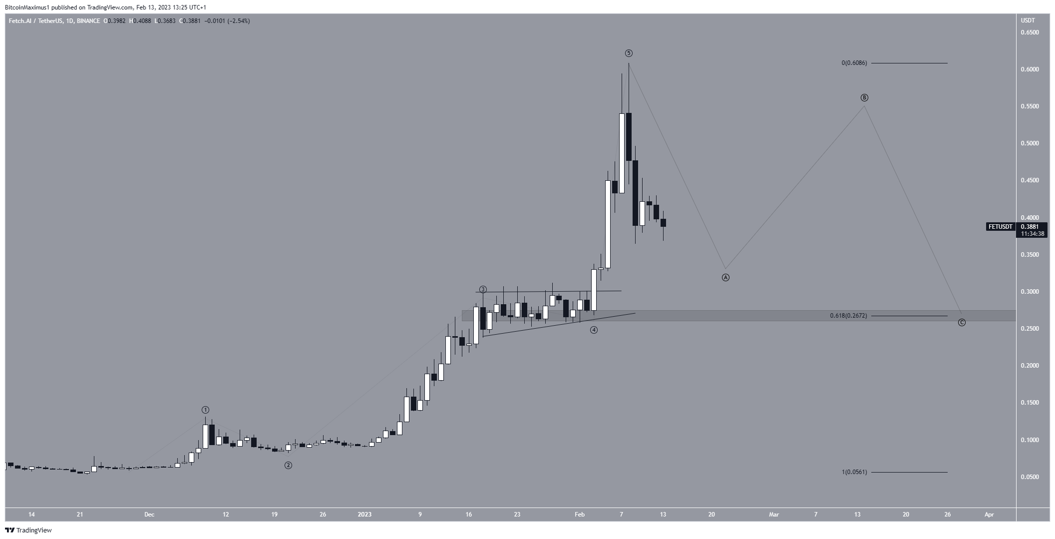 The Fetch.ai (FET) price is likely correcting the entire increase from Jan. The correction could end near $0.27.