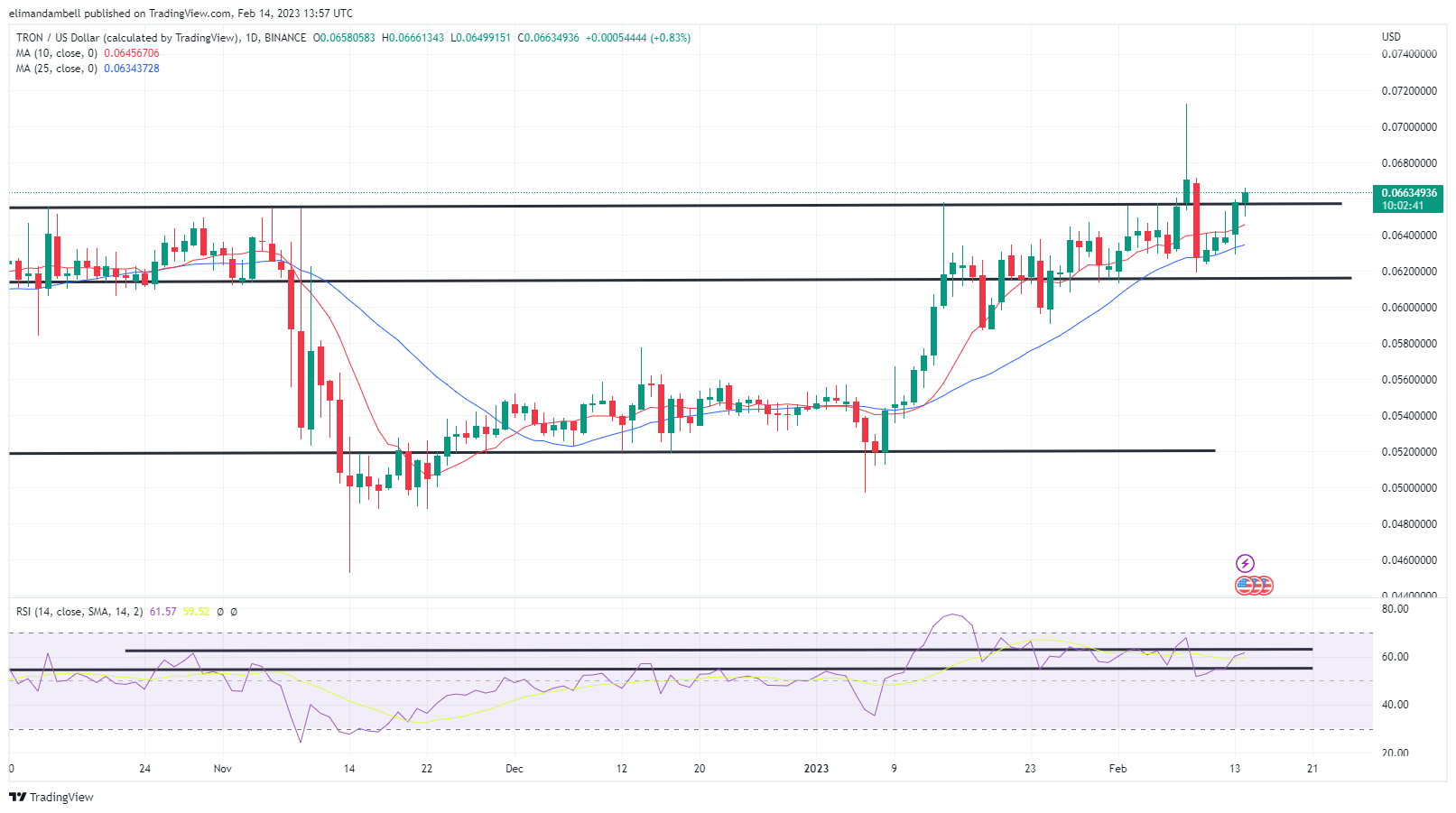 Following a low of $0.06414 to start the week, TRX/USD raced to an intraday high of $0.06638 earlier in the day.