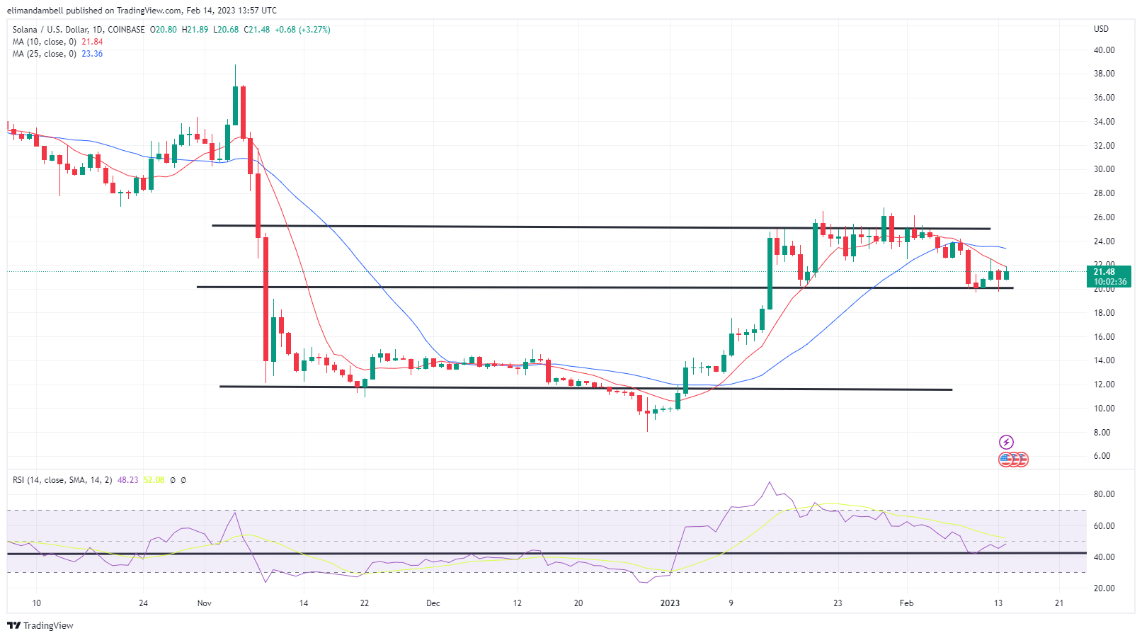 SOL/USD surged to an intraday high of $21.70 earlier in today’s session, which comes a day after trading at a bottom of $19.87.