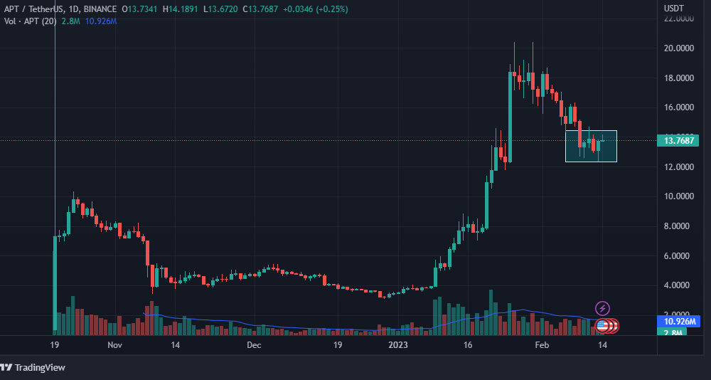The analysts for APT might have observed that after a significant bull rally, the token displayed a down move and is now consolidating at the current price levels. The level at which the token is currently trading is one of the coin’s strong resistance.