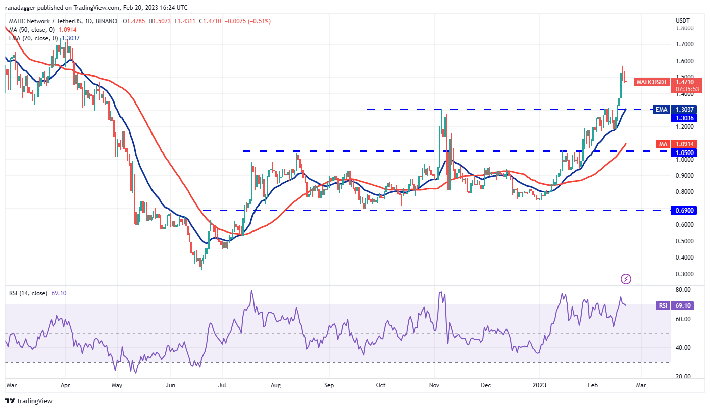 Polygon (MATIC) is in a strong uptrend. The bears tried to stall the up-move near $1.57 but the shallow pullback suggests that bulls are not rushing to the exit.