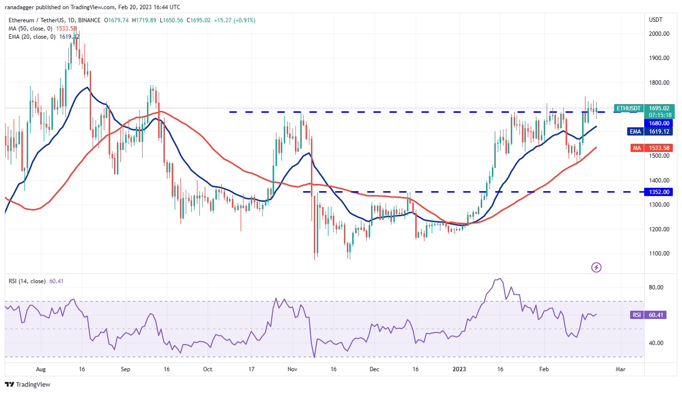 Buyers pushed Ether (ETH) above the overhead resistance of $1,680 on Feb. 17 and thwarted attempts by the bears to pull the price back below the breakout level.