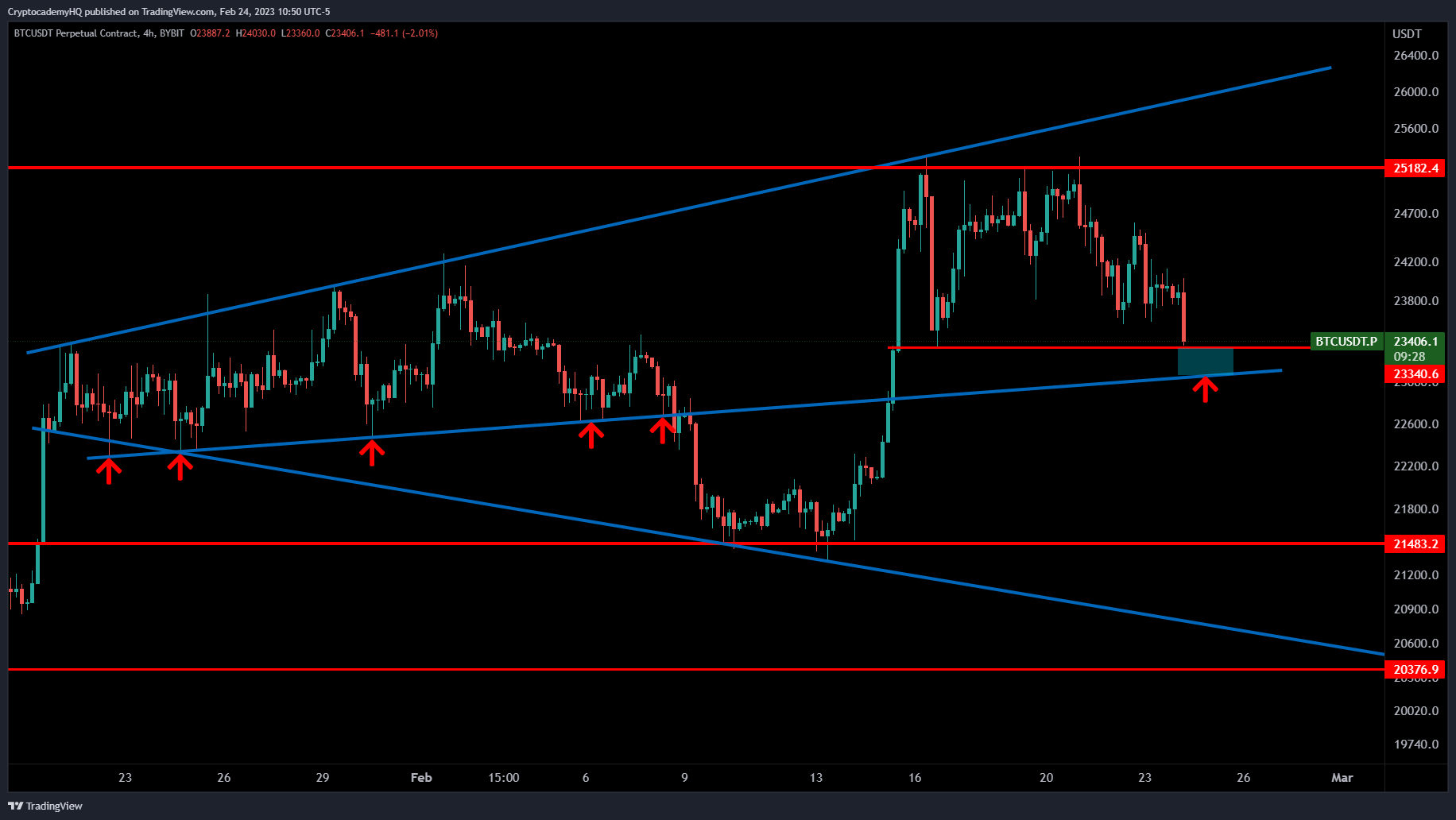 With BTC trading for $23,984 at time of writing, analyst Justin Bennett tells his 111,400 Twitter followers that Bitcoin bulls must hold $23,000.