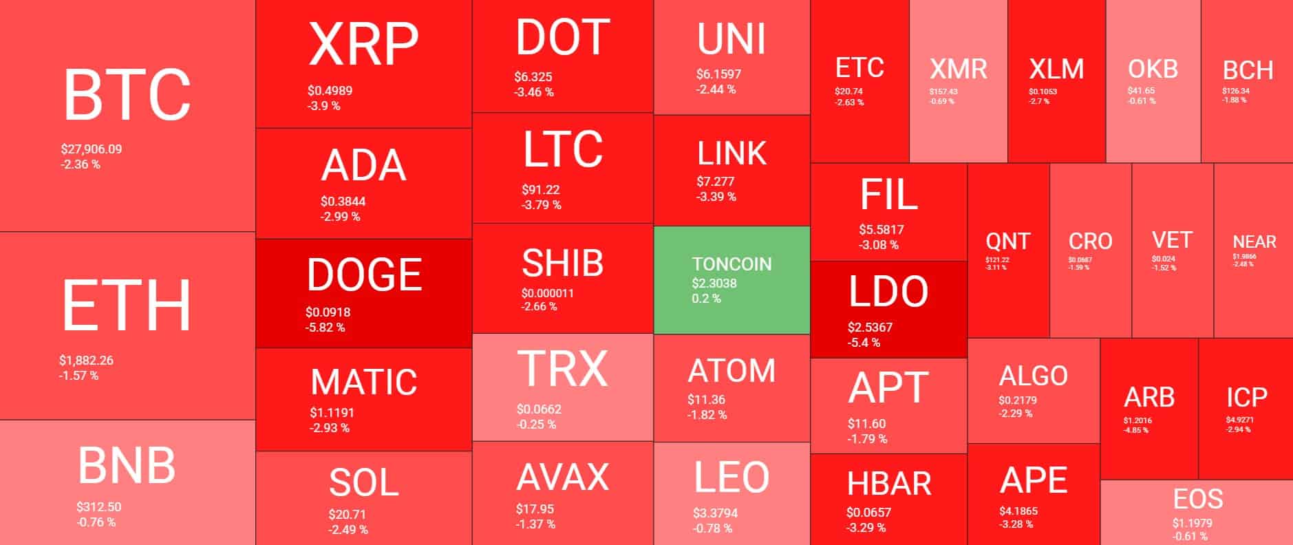 Most alternative coins have also turned red today, with some, such as $DOGE, $LDO, and $ARB, dropping hard.