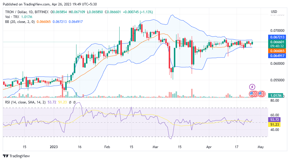 TRON has overshadowed Ethereum and many other cryptocurrencies regarding active users. Still, its price has been consolidating within a range in the last few months, whereas Bitcoin and Ethereum prices have risen, especially after the US banking crisis.
