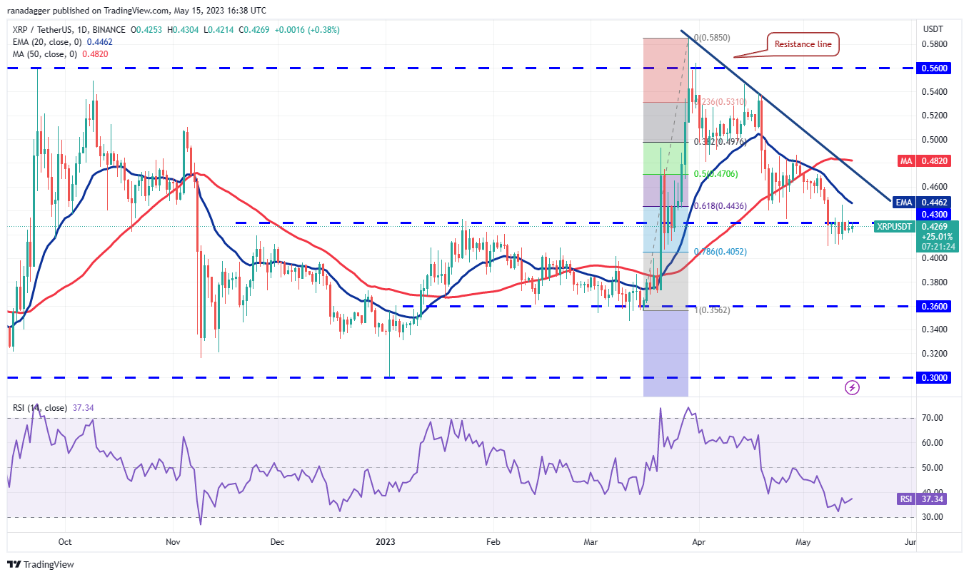 XRP (XRP) has been trading below $0.43 for the past few days but a minor positive in favor of the bulls is that they have not allowed the bears to extend the decline further.