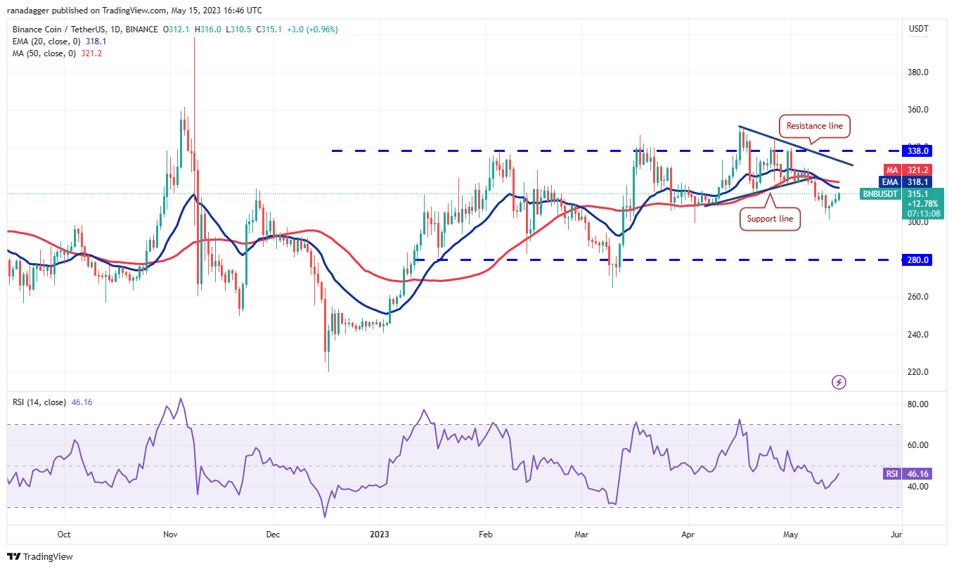 The bulls have pushed BNB (BNB) to the moving averages, indicating that the $300 level is proving to be a strong support.