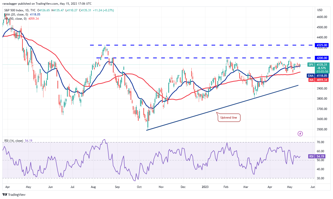 The S&P 500 Index has been trading near the 20-day exponential moving average (4,118) for the past few days. This suggests a tough battle between the bulls and the bears for supremacy in the near term.
