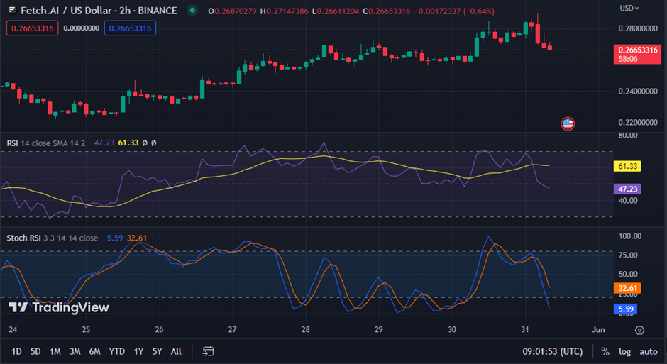 Today’s bullish momentum in the Fetch.ai (FET) market was at its peak, with the price jumping from a 24-hour low of $0.2619 to a new 7-day high of $0.2888. As of press time, the FET was trading at $0.2711, up 2.78% from its previous close.