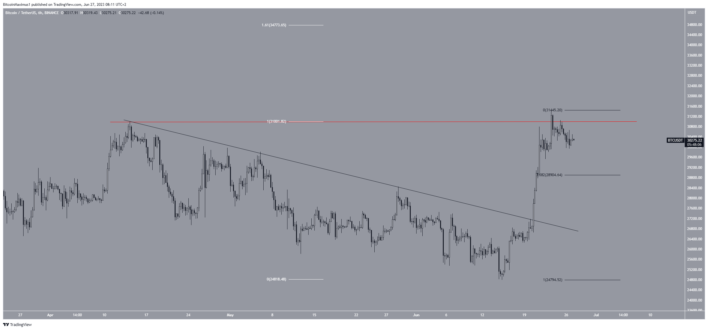 The Bitcoin price reached a new yearly high of $31,431 on June 23. It did so after breaking out from a descending resistance line that had been in place since the previous yearly high. This is a sign that the previous correction has ended.