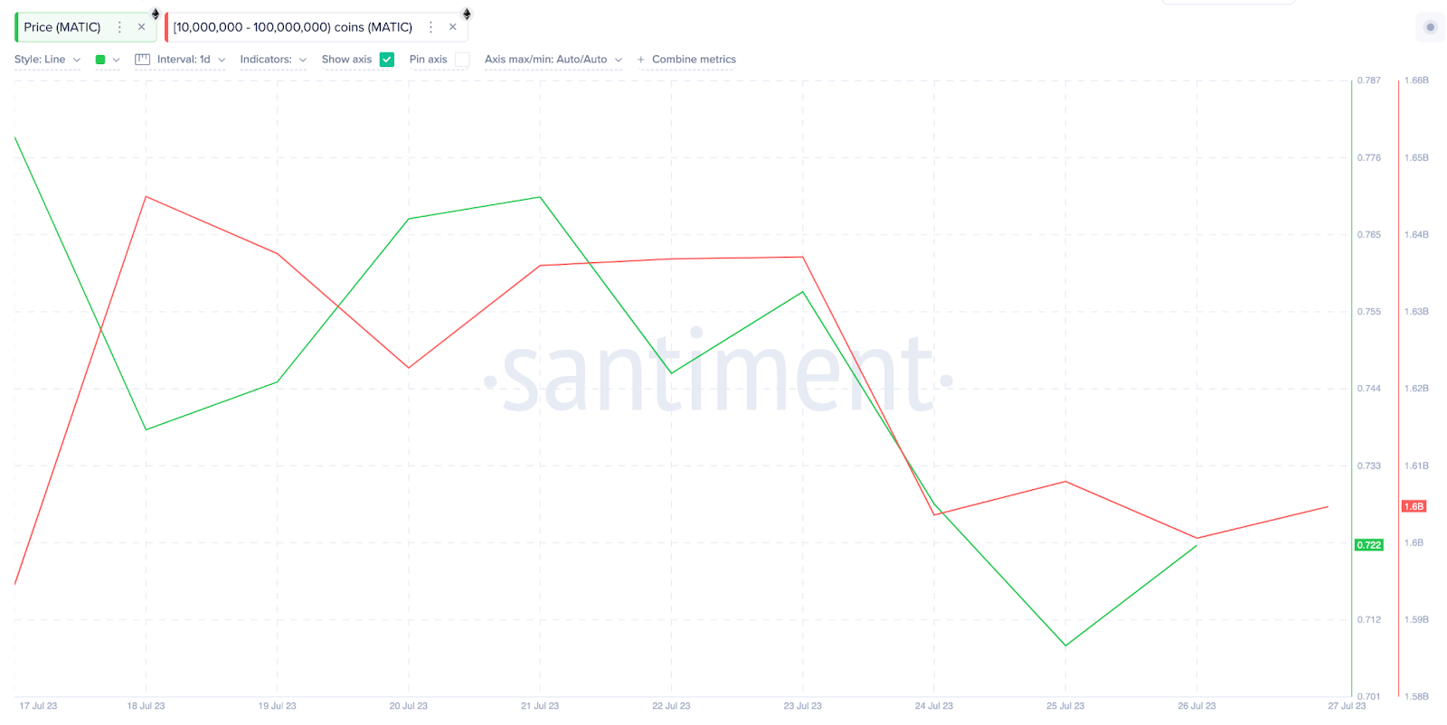 Specifically, the whales holding balances of 10 million to 100 million MATIC have sold off 23 million coins between July 18 and July 27.