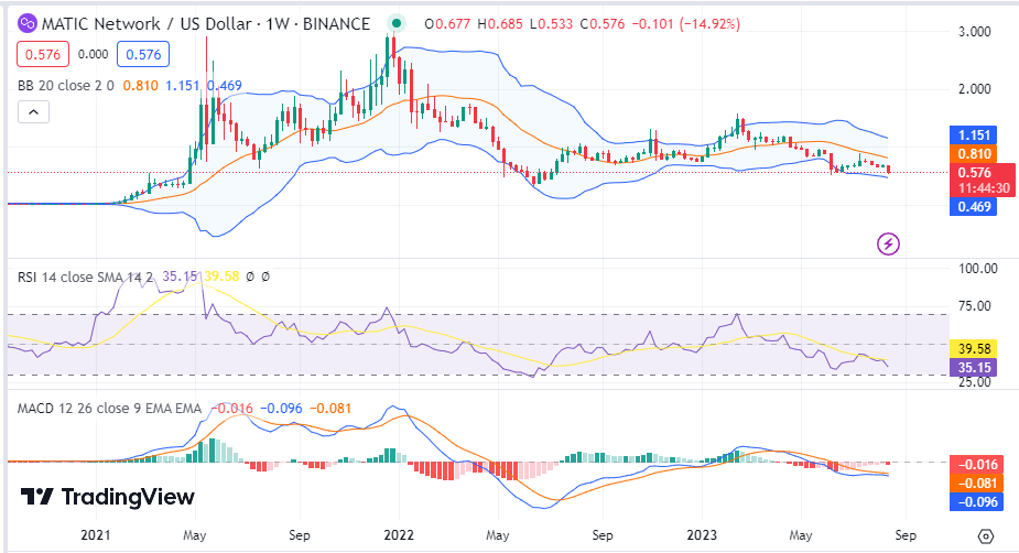 MATIC has had a rather turbulent week as the asset posted losses of 15% within a day of trade to hold a spot price of $0.5766 as the trading volume now stands at $214.8M while the market cap now stands at $5.3B.