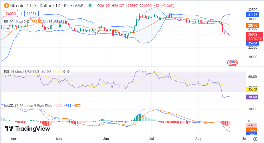 Bitcoin (BTC) is still facing mild bear activity as the asset trades at $26.04K after recording a daily decrease of 0.08% and a weekly decrease of 11.2%. However, Bitcoin’s trade volume has spiked by 40% during the same period and is presently at $12.9B.