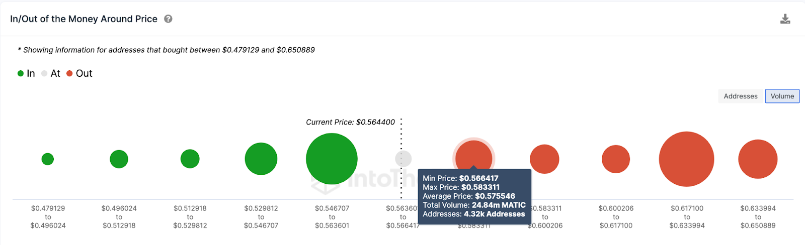However, it highlights that 4,320 addresses had bought 24.8 million MATIC tokens around the average price of 0f $0.58. They could pose considerable resistance if they sell early.