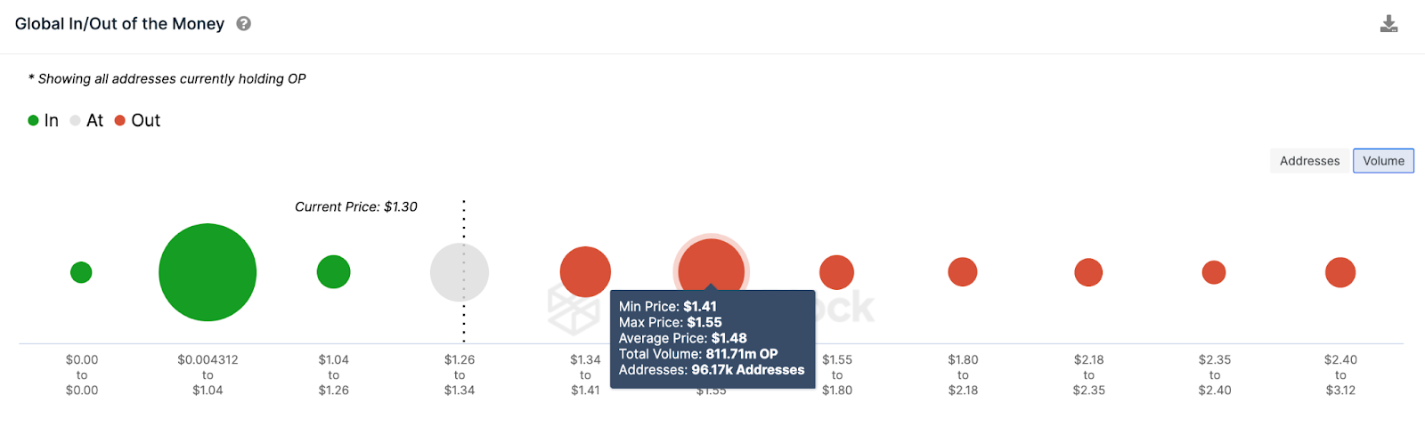 As shown below, the 96,170 addresses bought 811,710 OP tokens at the average price of $1.48 is the major obstacle that could prevent the bulls from reclaiming $1.50.