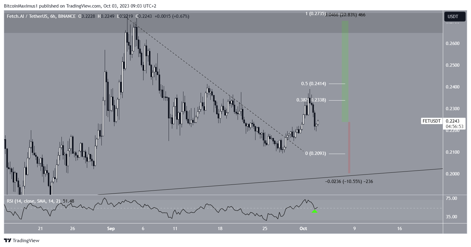 Despite this bullish FET price prediction, failure to clear the 0.382-0.5 Fib region will likely lead to a retest of the long-term ascending support line at $0.20. This would be a drop of 10%.