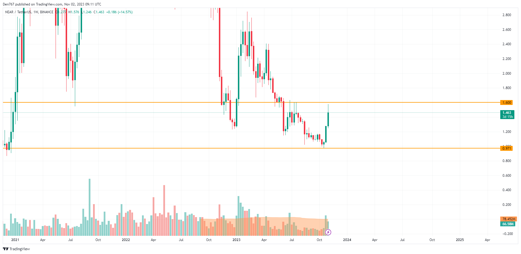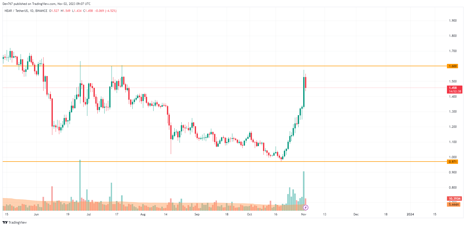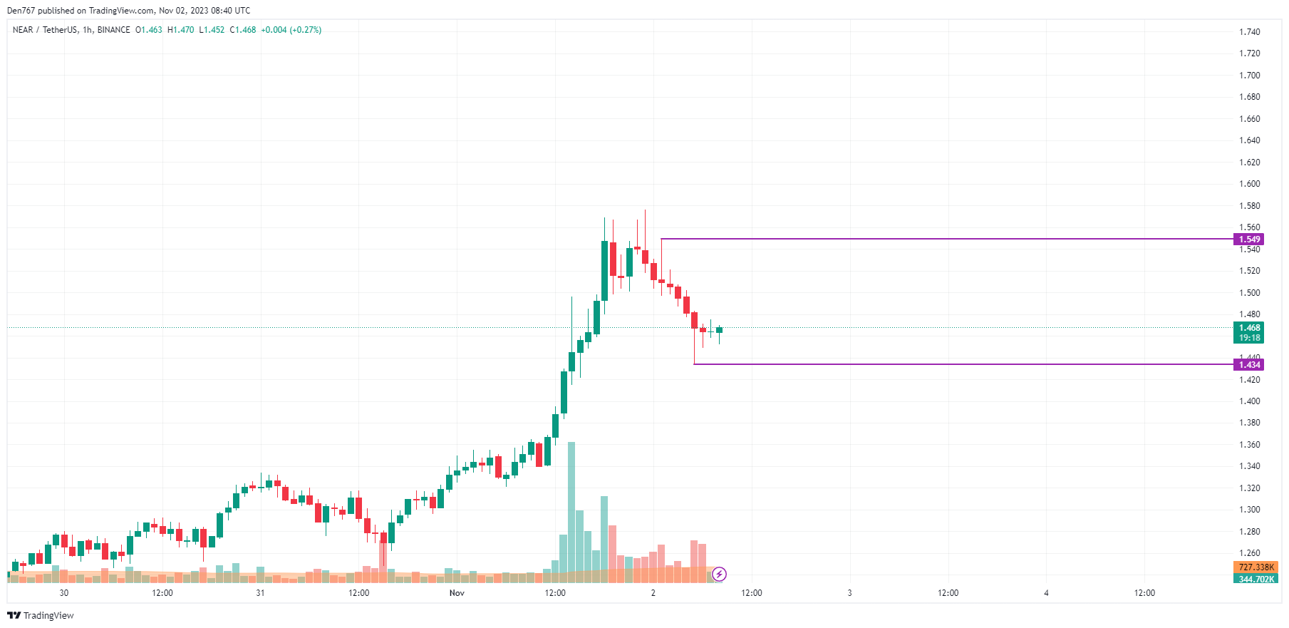 Despite today's rise, the rate of NEAR is looking bearish on the local chart. The price has set a support level of $1.434.