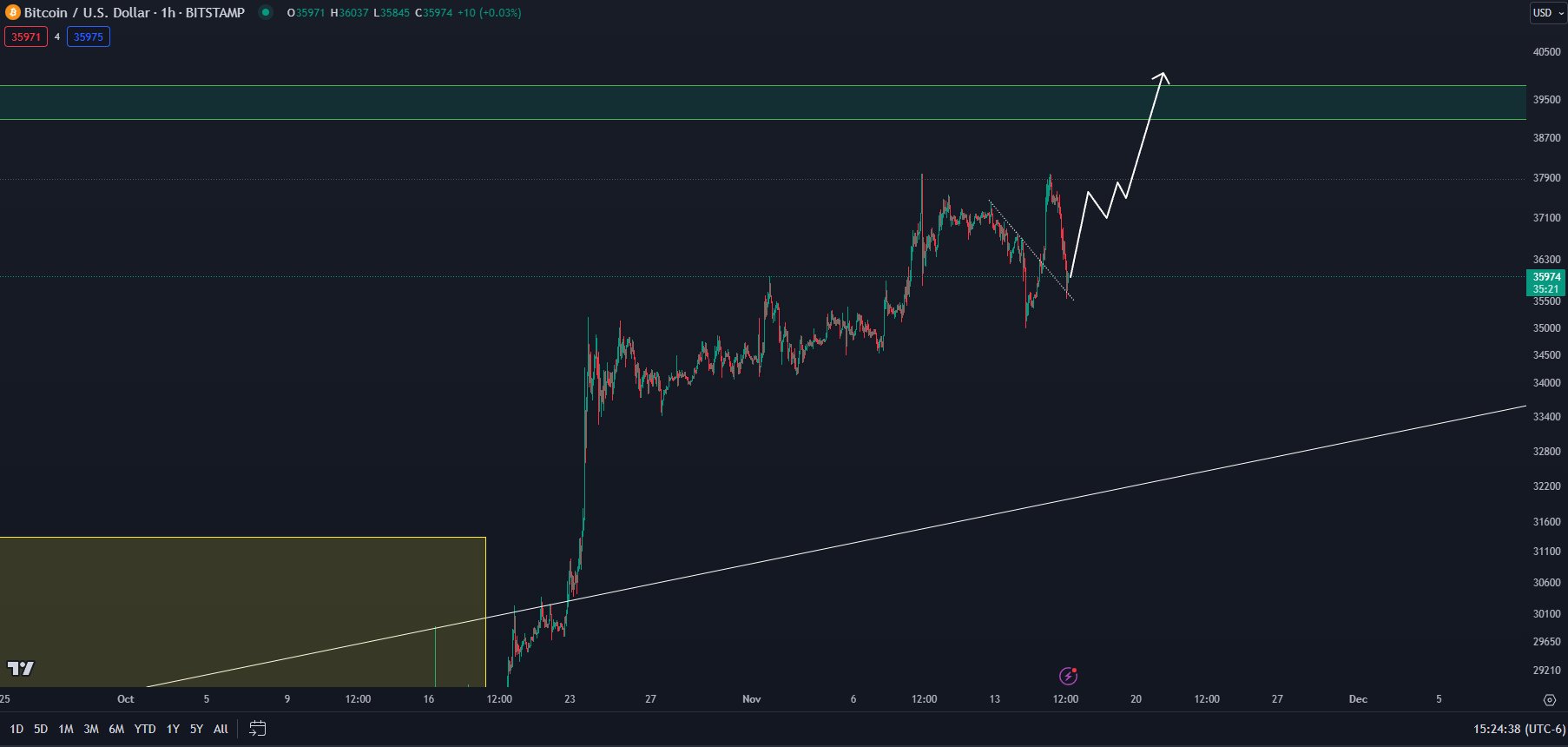 As for Bitcoin (BTC), the analyst thinks that the latest correction is designed to shake out speculators before a rally to a new 2023 high.