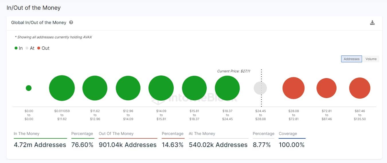 Drawing on its improved profitability, IntoTheBlock posits that $AVAX has no resistance on its way to the $30 mark.