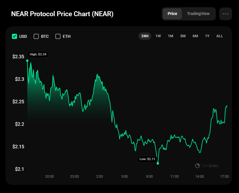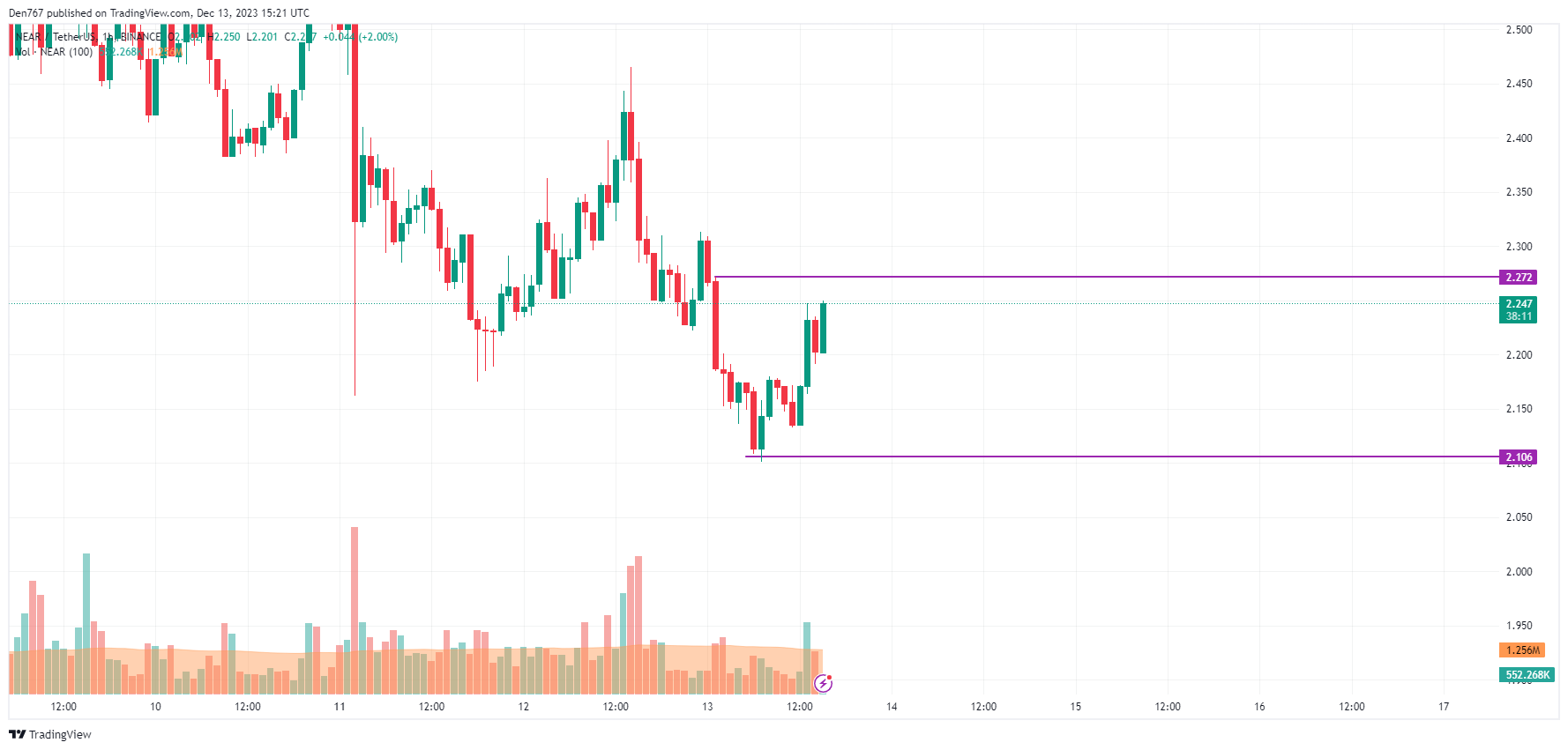 Despite today's fall, the price of NEAR is looking bullish on the hourly chart. If the rate can get back to the local resistance of $2.272, there is a chance to see a breakout tomorrow, followed by a move to the $2.30-$2.350 zone.