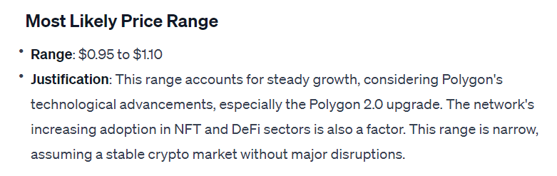 ChatGPT predicts the price of Polygon on January 1