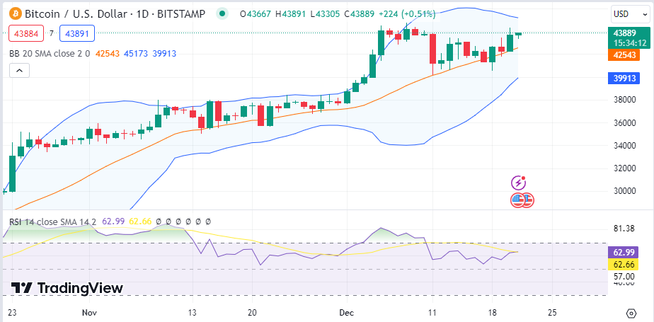 Bitcoin (BTC) is riding on bull activity, as the Bitcoin price stood at $43.8K as of press time after recording a daily increase of 2.3% and a weekly rise of 2.19%. As a result of the Bitcoin price, the token’s trade volume jumped by 37% during the same period and is presently at $28.8B.