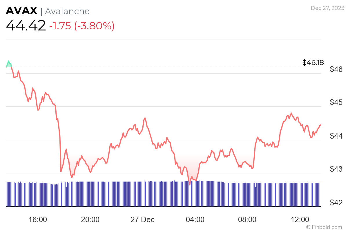 $AVAX’s recent price movements serve well to showcase the cryptocurrency’s overall volatility, as well as its recent dramatic bull run. In the last 24 hours, Avalanche declined 3.80% to the price of $44.42 by the time of publication.