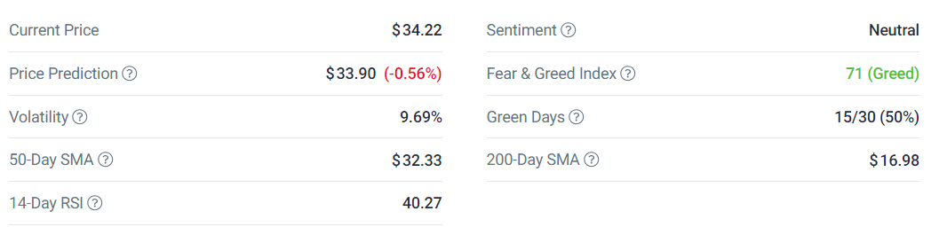While this is below its price at the time of publication – $34.44 – it is more indicative of the forecast volatility than overall price expectations. Upon extending the view toward early February, CoinCodex foresees that Avalanche will find itself slightly above $37 in one month’s time.