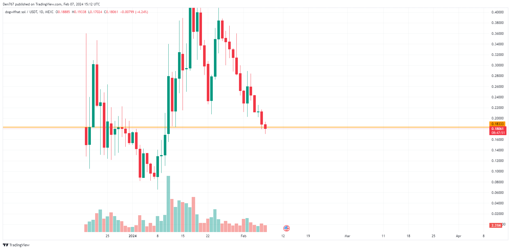WIF is trading at $0.18012 at press time.