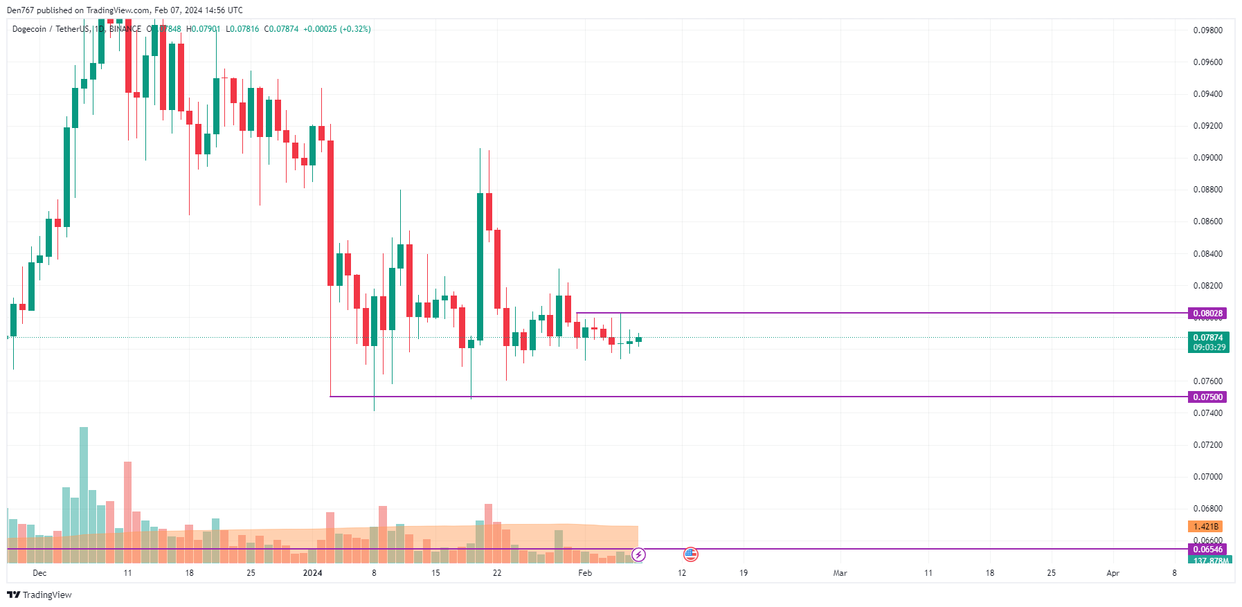 DOGE is trading at $0.07882 at press time.