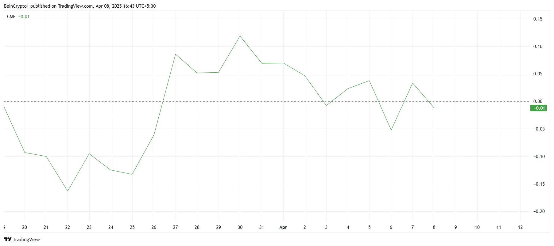 On a broader scale, the Chaikin Money Flow (CMF) indicator, which tracks capital inflows and outflows, signals rising skepticism about SUI’s price trajectory. Since the beginning of the month, the CMF has moved below the zero line, reflecting more outflows than inflows. This suggests that investors are hesitant, and the lack of buying pressure could hinder any immediate price recovery.