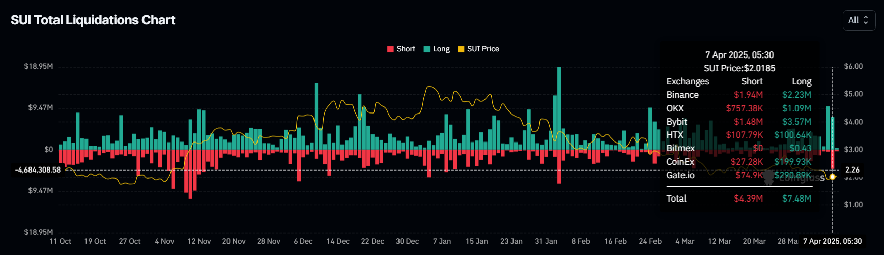 Data from futures markets reveals that SUI recently experienced a two-month high in short liquidations, contributing to a total of $12 million in liquidations over a single day. These liquidations reflect the increased skepticism among traders, as many were forced to close their positions amid a rising bearish sentiment. The liquidations highlight the challenges faced by SUI traders, whose bullish outlook failed to materialize.