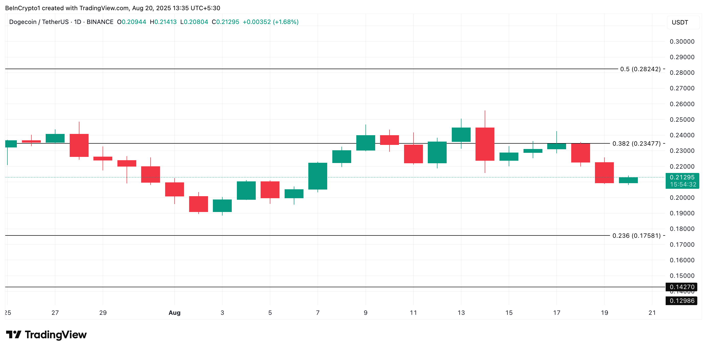 Dogecoin’s (DOGE) price has tapered downward since August 17, losing roughly 9% of its value over the past three days.