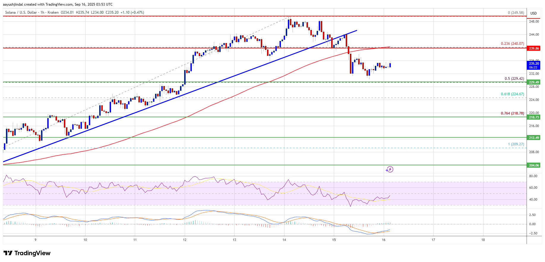 Besides, there was a break below a bullish trend line with support at $242 on the hourly chart of the SOL/USD pair. Solana is now trading below $240 and the 100-hourly simple moving average.