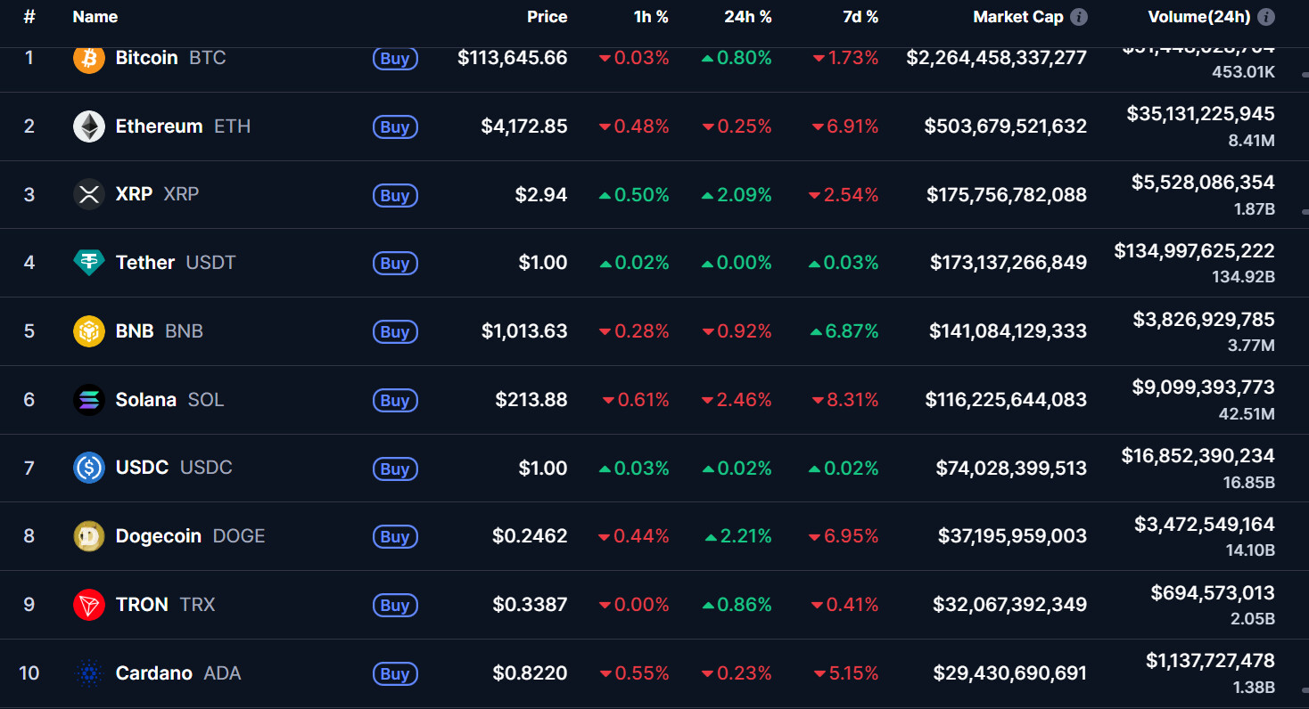 As a result, Solana is trading at $213. 88, having dropped 2.46% in the last 24 hours. This is the most significant decline in comparison to the top ten coins by market cap, as all other coins have remained, with BNB experiencing the maximum decline of almost 1%.