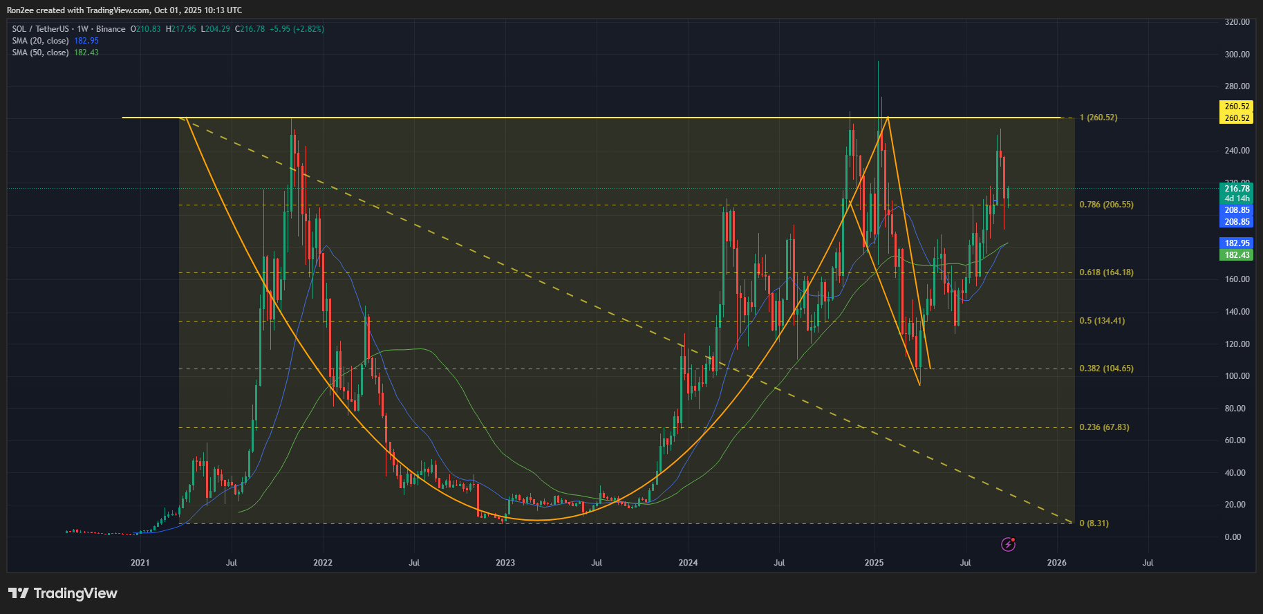 On the weekly chart, Solana has turned the $204-206 level into support, a level that has historically acted as key resistance on multiple occasions over the past four years.