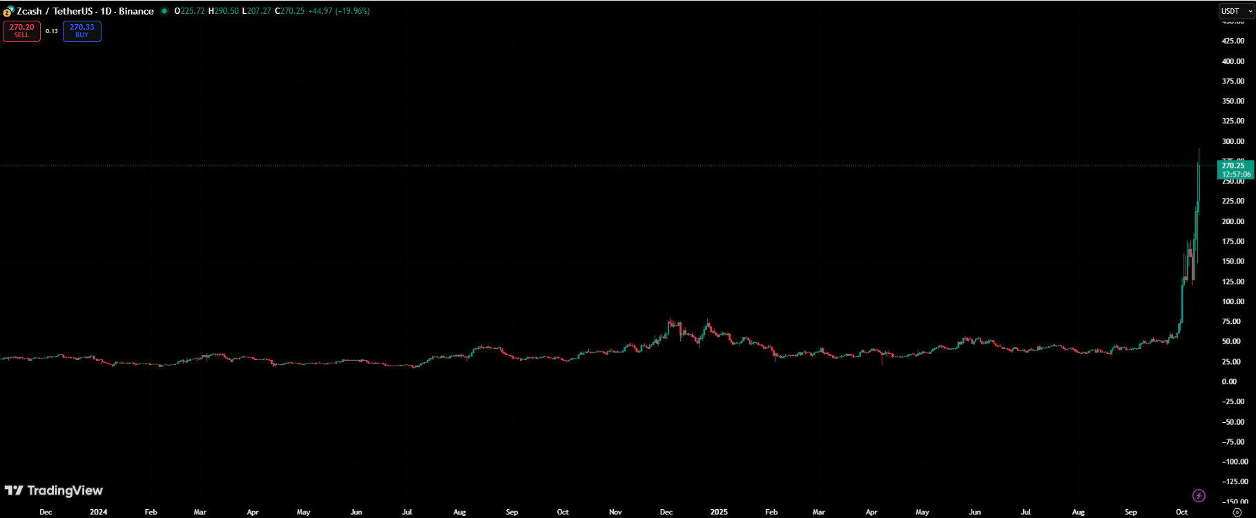 As the crypto market steadies following last week’s dramatic crash, Zcash (ZEC) has emerged as one of the standout gainers. The privacy-focused cryptocurrency surged above $260, marking an 11.84% daily jump and an impressive 94% weekly gain, pushing its market capitalization to over $4.2 billion.