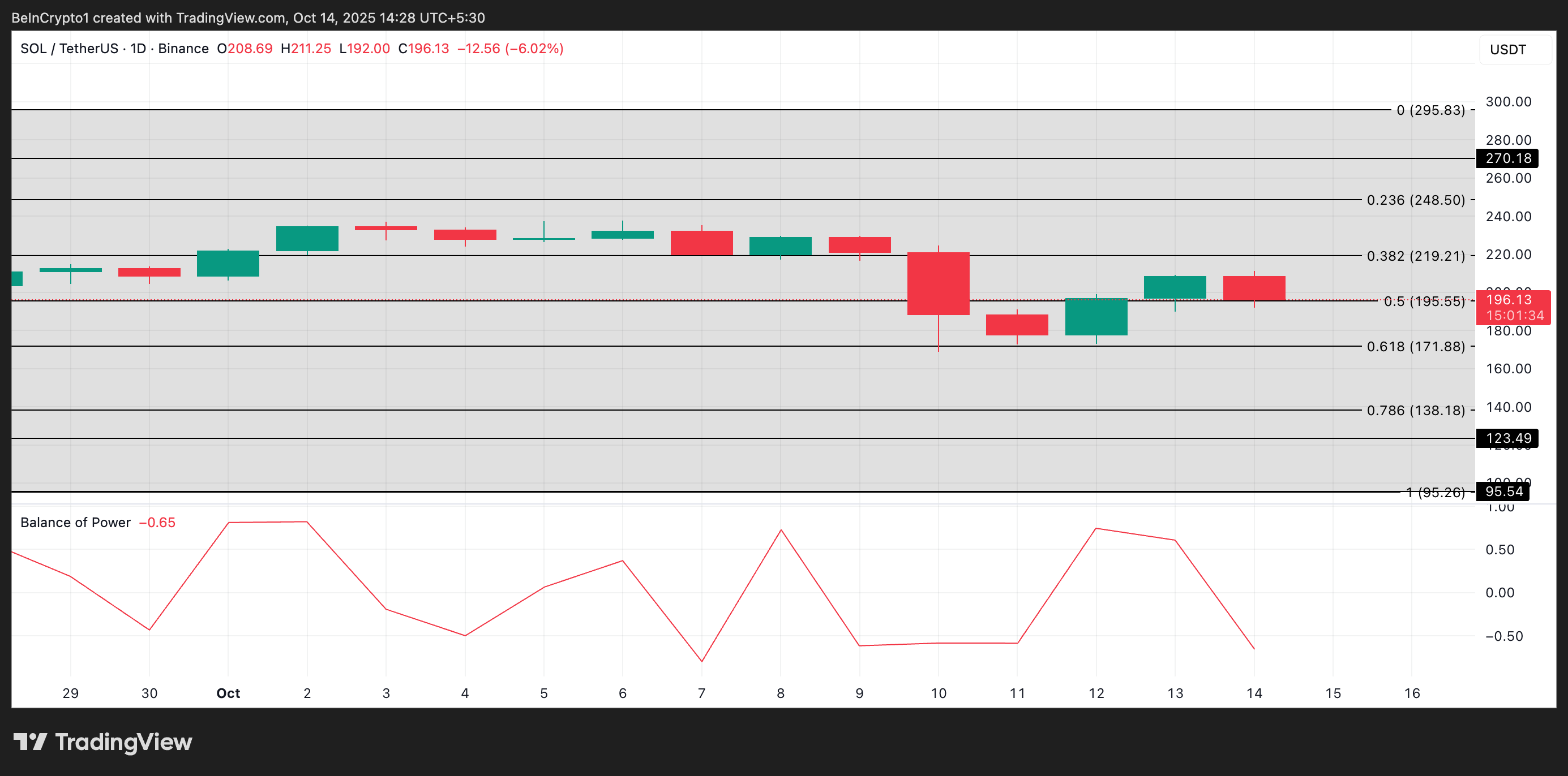 On the daily chart, SOL’s negative Balance of Power supports this bearish outlook. As of this writing, the momentum indicator is in a downtrend at -0.65.