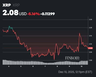 By press time, XRP was trading at $2.08, up about 0.6% in the past 24 hours, while down roughly 5% on the week.