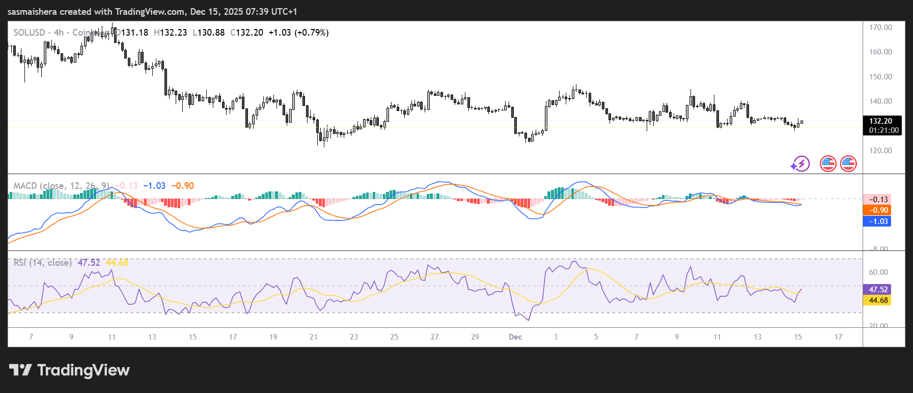 Solana (SOL)’s price is hovering above $132, with the coin down by less than 1% over the past few hours.