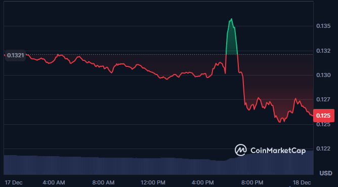 At the time of writing, Dogecoin trades at around $0.1259, indicating a 4.74% decrease in the last 24 hours. The analyst stated Dogecoin shows no bullish indicators until it breaks its established downtrend. Current technical conditions favor continued weakness.