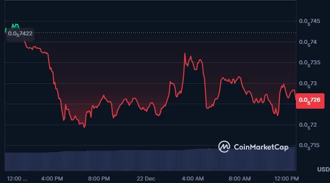 SHIB is trading at around $0.000007260 at press time, indicating a 2.37% decline in the last 24 hours.