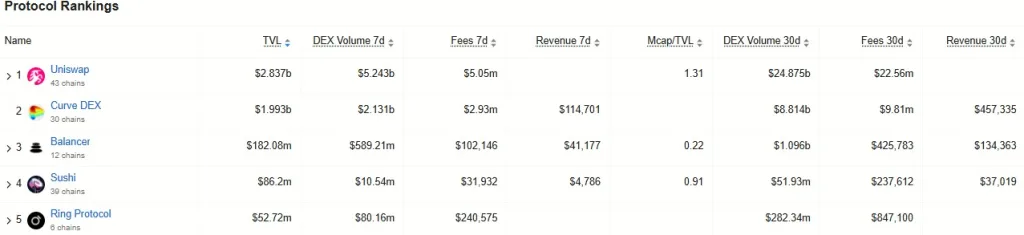 Over the past month, the protocol captured roughly 44% of total fees generated across Ethereum-based DEXs, according to DeFiLlama, a stark jump from around 1.6% a year earlier. That translated to about $15.1 million in revenue before dipping to $9.81 million, putting Curve second only to Uniswap during the period.