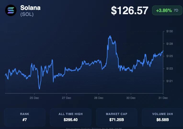 Solana’s price recently traded near $126.16, reflecting weekly gains alongside rising market confidence. Consequently, SOL’s market capitalization stands near $71 billion with strong trading volume.