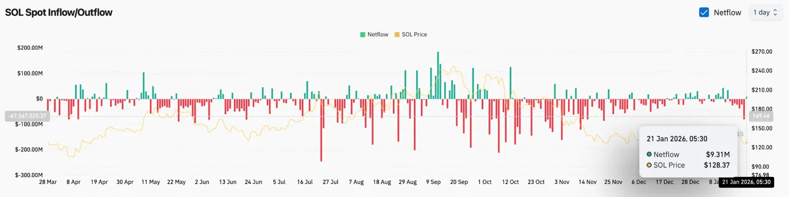 Spot exchange flows confirm the accumulation thesis. Coinglass recorded $9.31 million in net inflows on January 21, meaning coins are moving off exchanges into private wallets. When both ETF and spot flows turn positive simultaneously, it typically signals that buyers view current prices as attractive entry points.