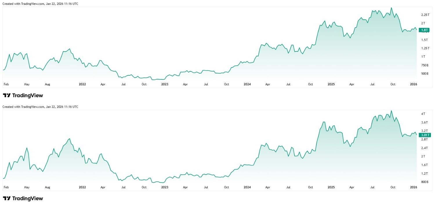Similarly, spot XRP exchange-traded funds (ETFs) saw nearly $53 million in outflows on January 20, reflecting the widespread risk-off sentiment.