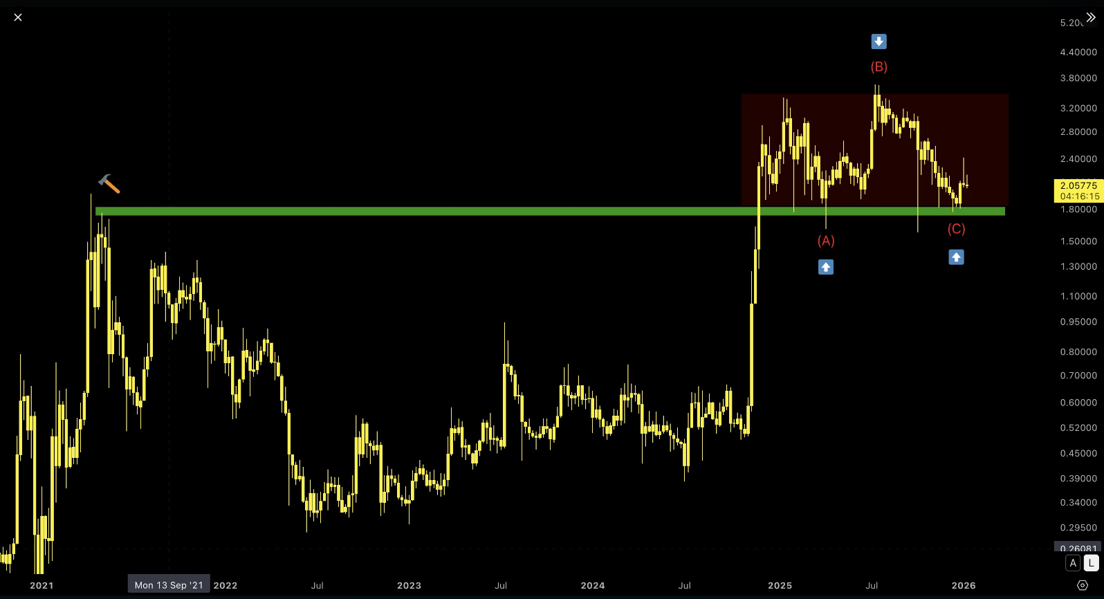 According to reports, the next major hurdle is a multi-month trendline resistance near $2.10. A clean daily close above this line, combined with rising volume, could signal the start of a new uptrend.