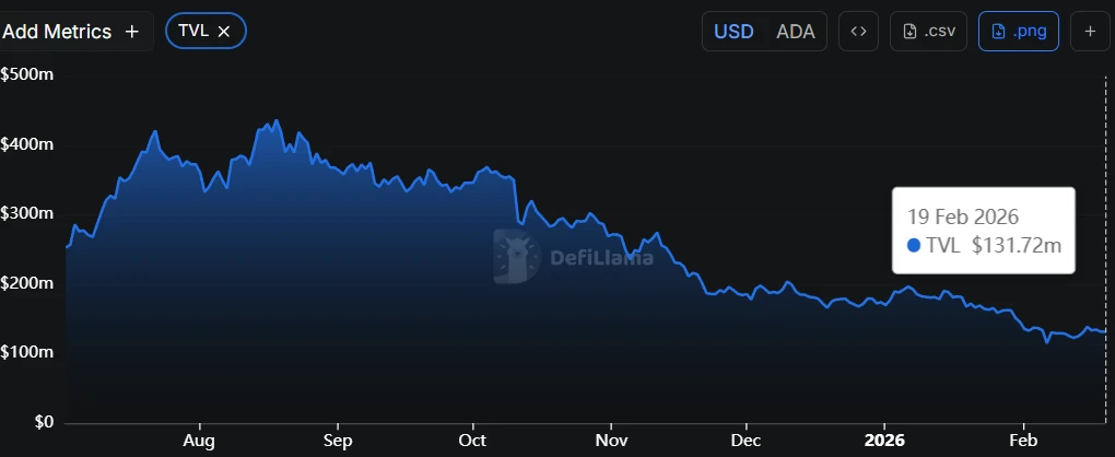 - Cardano’s total value locked has plunged from about $686 million in December 2024 to nearly $134 million, marking an 83% drop.