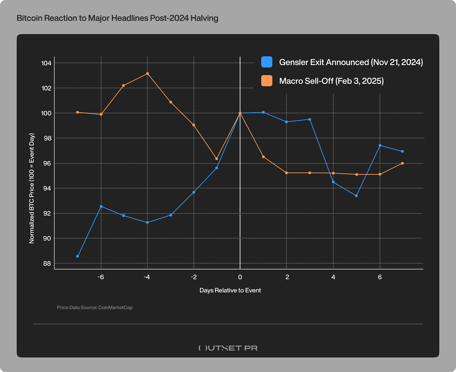 In November 2024, when news of his impending exit became public, Bitcoin was trading in the mid-$80,000s. Over the following weeks, price pushed higher to the $100,000 level. But the move unfolded gradually, with much of the appreciation taking place before the leadership change became official in January 2025.