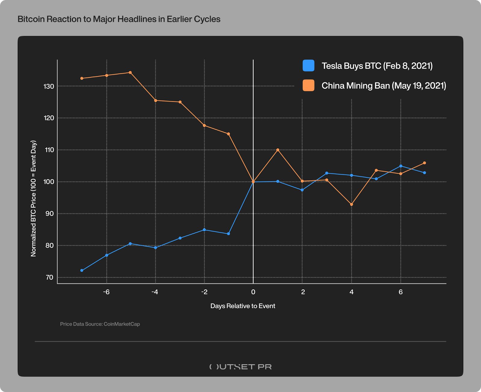 The contrast is telling. In 2021, major headlines produced immediate double-digit moves jostled around the news itself. In the current cycle, developments of similar importance have resulted in multi-day trends, with price often moving ahead of official announcements.